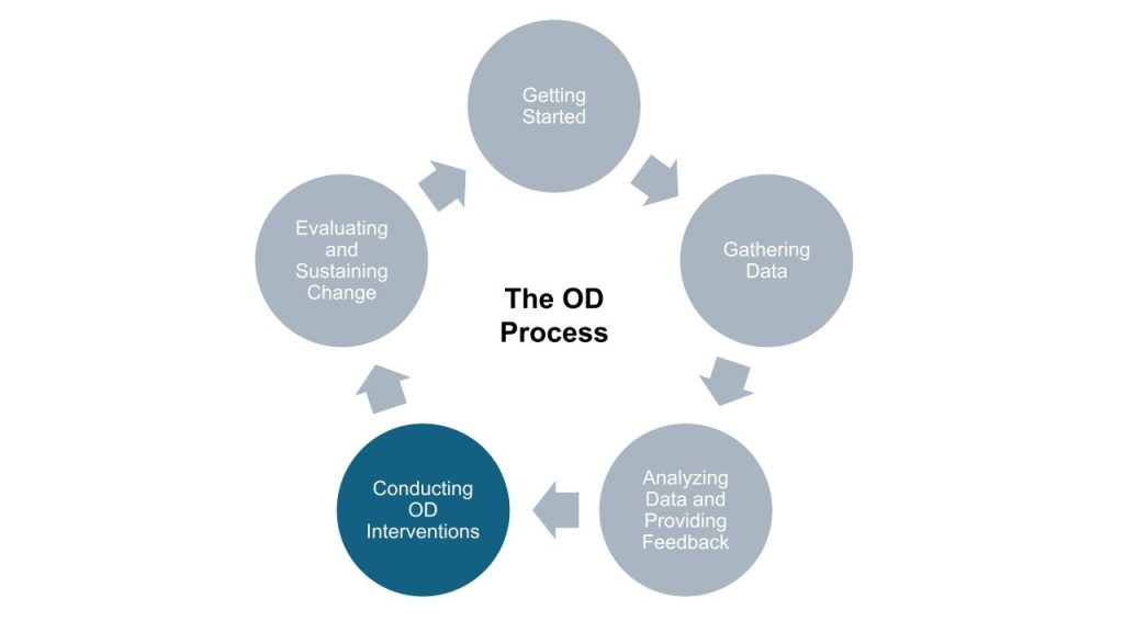- Monitoring the executions and assessing the outcomes of the implemented OD interventions.